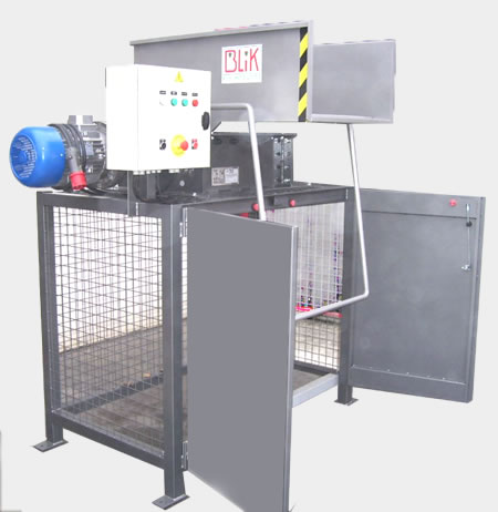 This crusher was designed for eliminating a variety of materials and waste products which normally occur in reprocessing, trade or services.